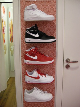 Air Force 1 (läs: ones) i mängder! 3 mids, som kostar 1000 kr styck, och 2 vanliga som kostar 900 kr styck. Kolla den vit/röda alltså, OMG jag döööör!