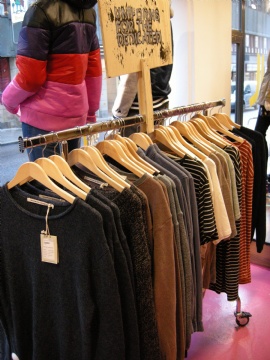 Mera stickat. De två godbitarna man ser på björken är från Elvine och kostar 1100 kr/styck, men vi har även en mängd stickade plagg från Cheap Monday som man kan se på bilden.