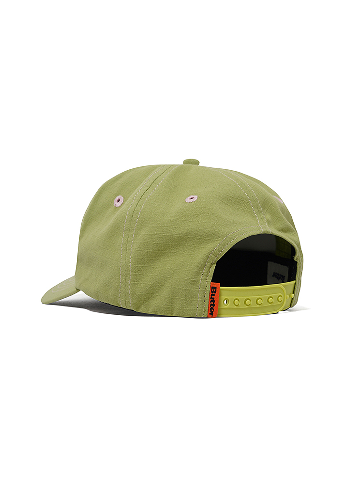 Grön Butter keps. Ripstop med kontrastsömmar och broderad logo fram. Ställbar storlek, snapback.