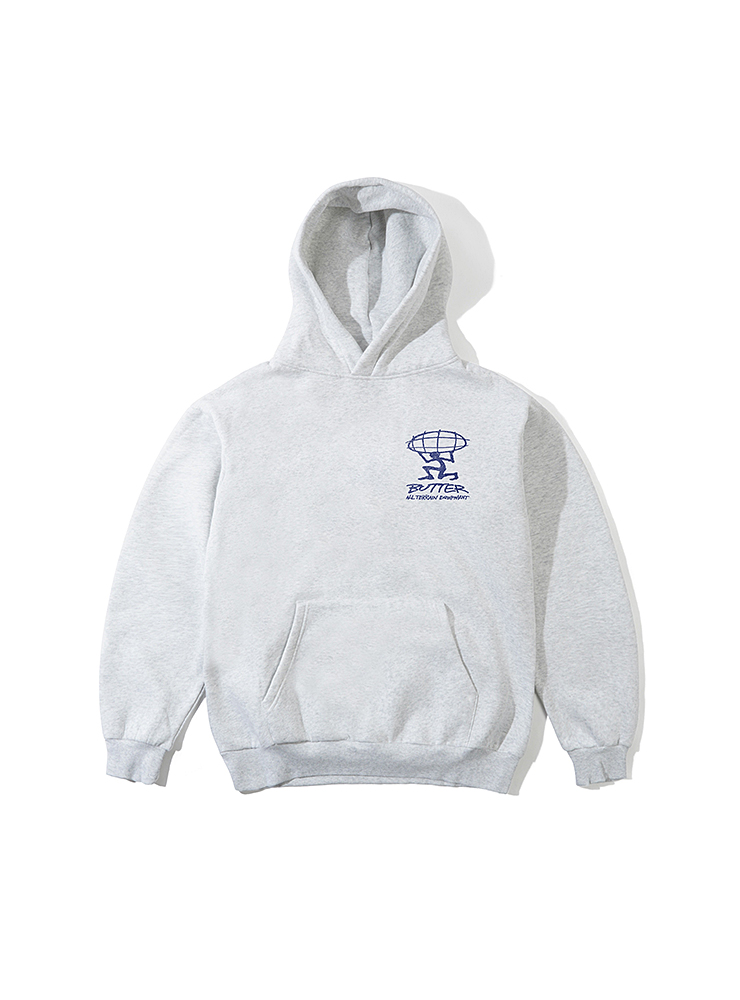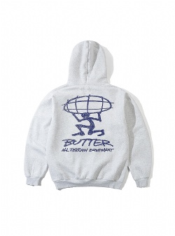 Grå Butter hood med tryck fram och bak. Butter all terrain equipment.