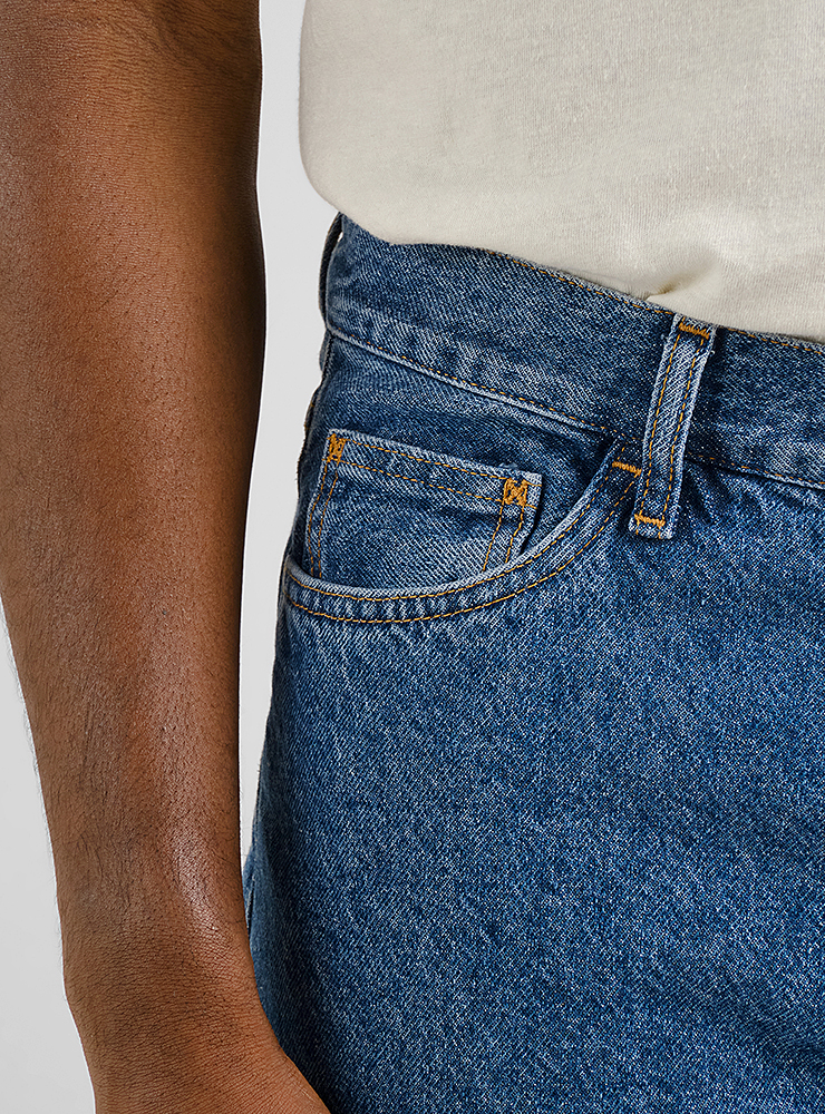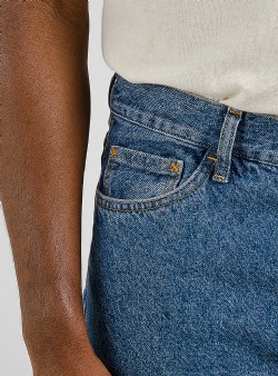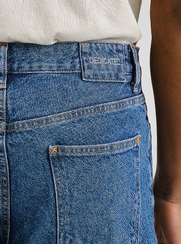 Tillverkade helt i återvunnen bomull, och det som spills i tillverkningen av ett par jeans återanvänds till nästa par. Dessutom utan nitar och läderdetaljer för att de lättare ska kunna återvinnas igen. Hatten av till Dedicated.