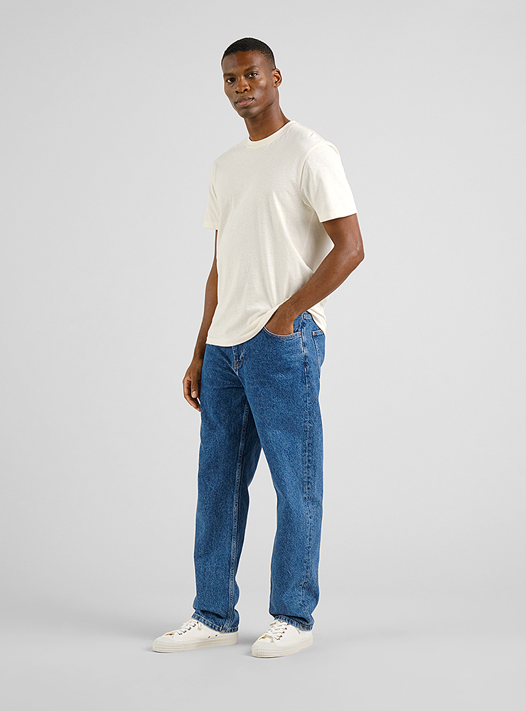 Dedicated jeans i relaxed fit i klassisk jeansblå färg. Lätt avsmalnande ben. Logopatch i tyg.