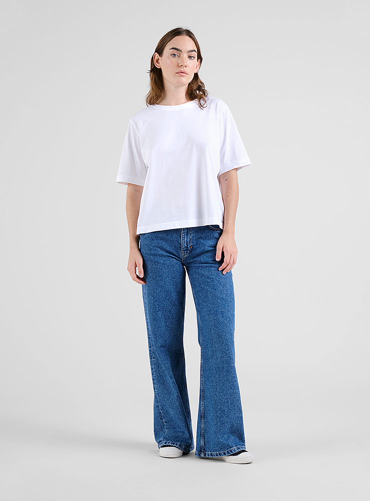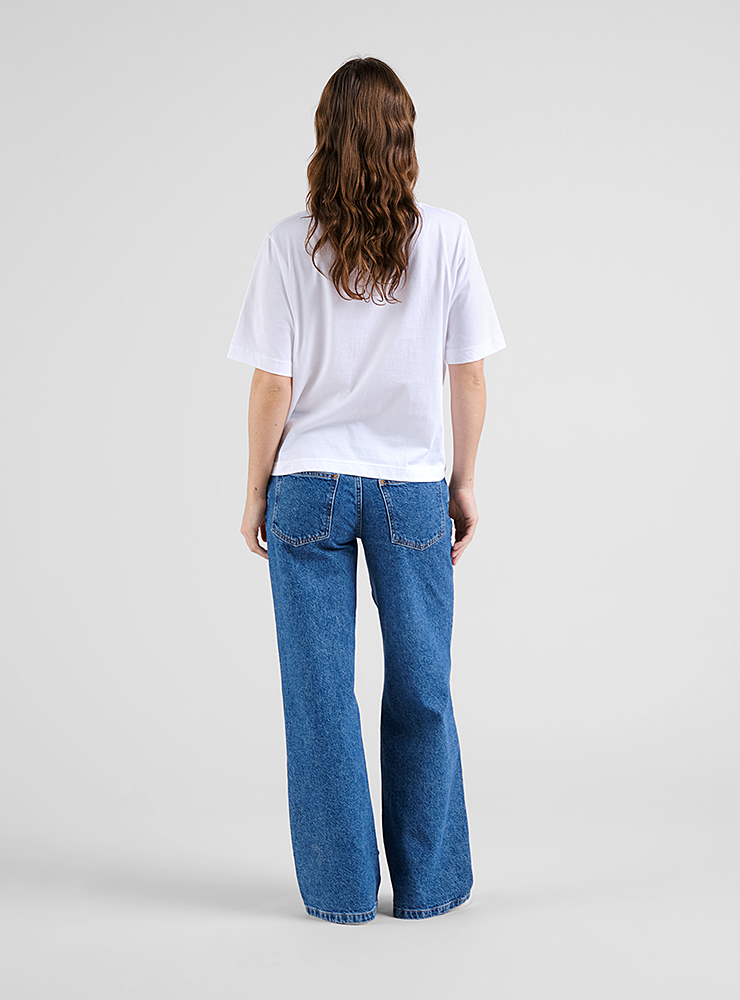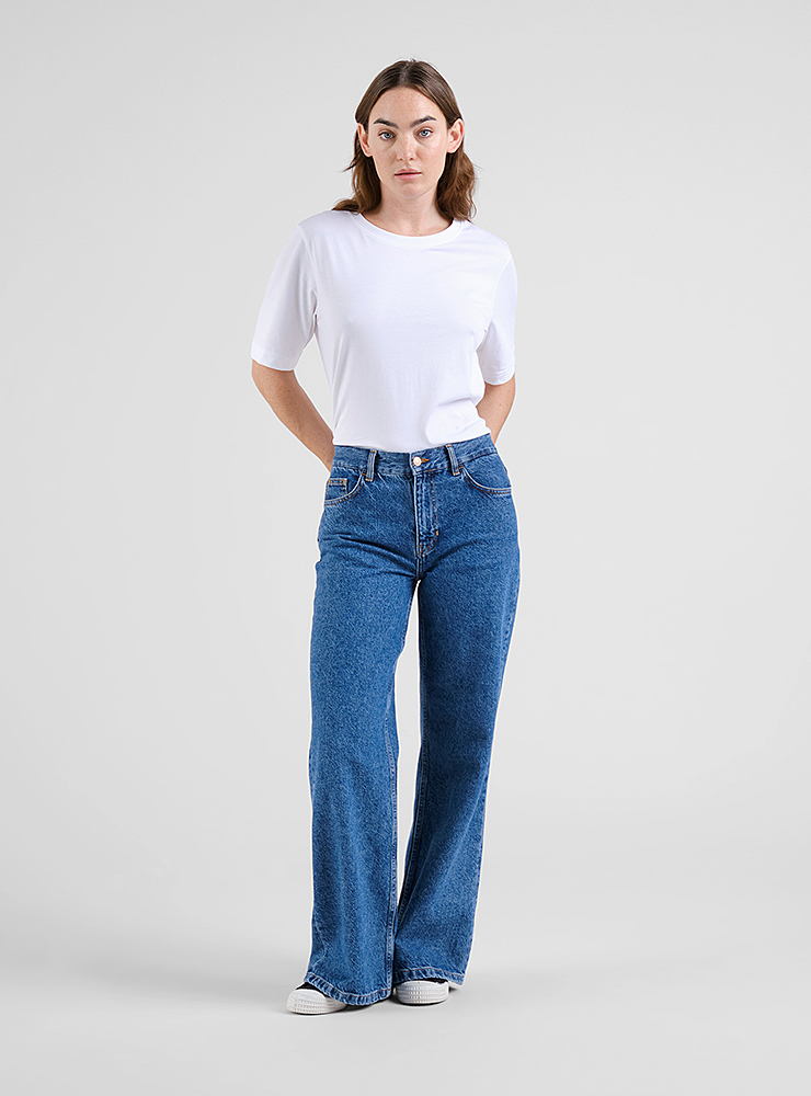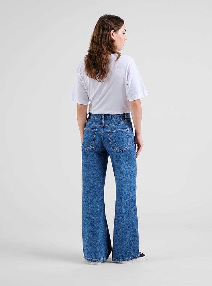 Dedicated jeans i klassisk jeansblå färg. Lätt utsvängda ben, medelhög midja. Logopatch i tyg.