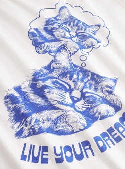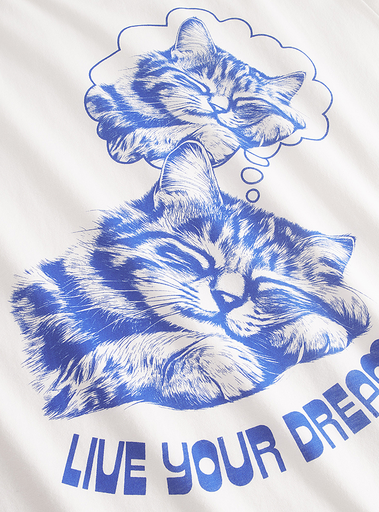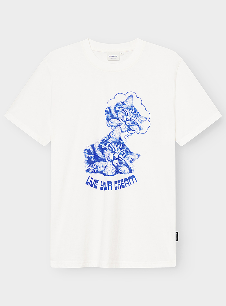Vit Dedicated t-shirt med en sovande katt som drömmer om en sovande katt och texten "Live your dream". Aldrig har väl en t-shirt gestaltat mej så bra som denna!