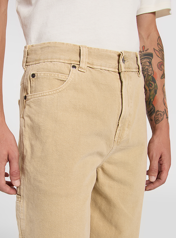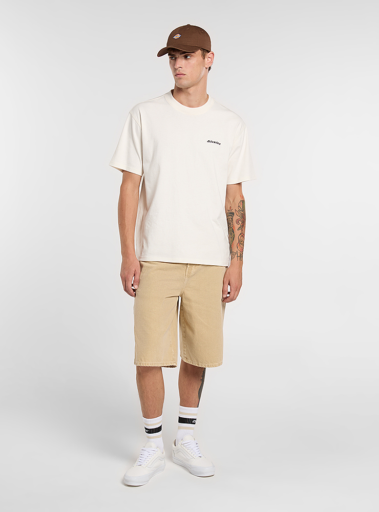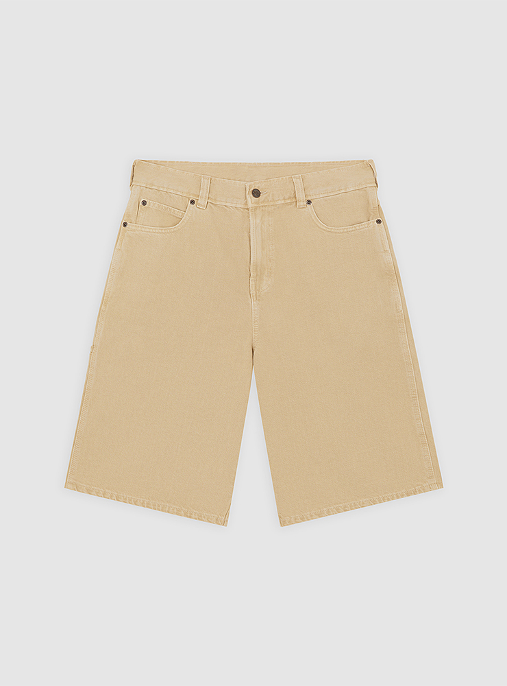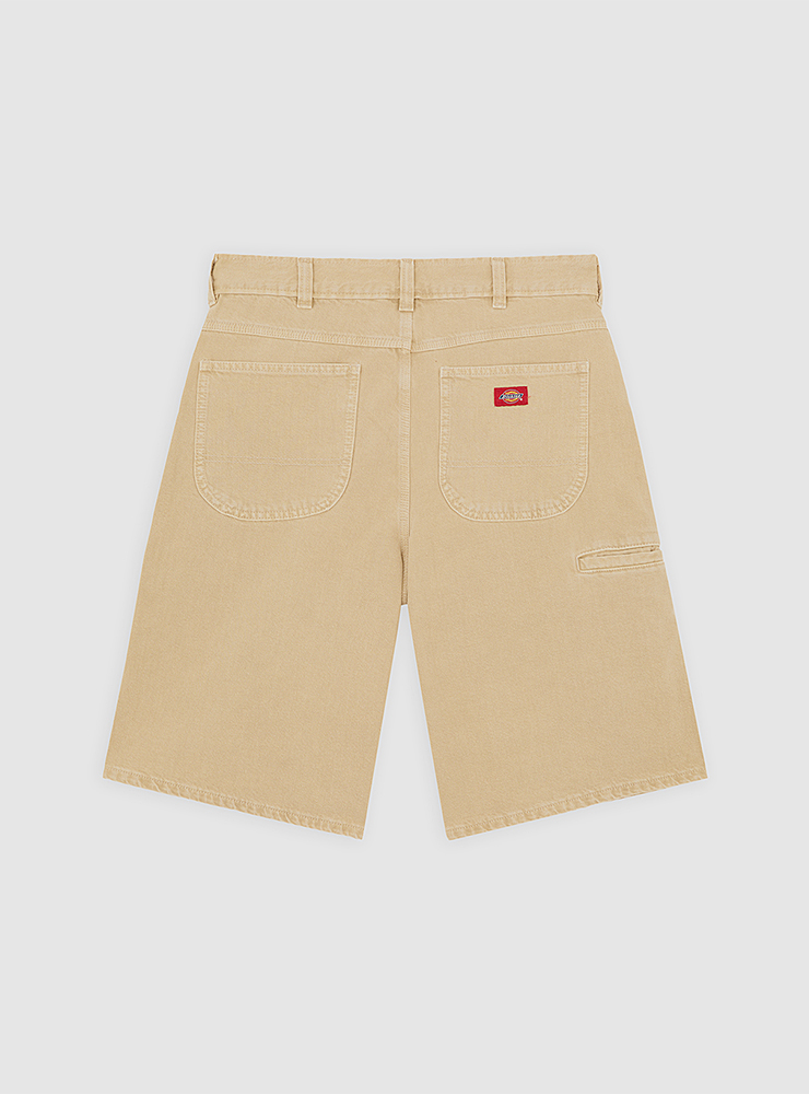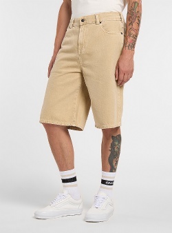 Beiga Dickies jeans shorts i baggy modell. Ficka på ena benet. Logo patch på bakfickan. Finns även i jeansblått.