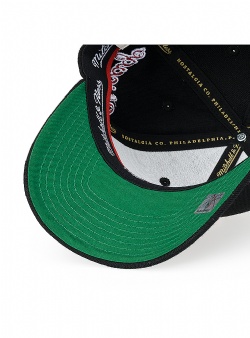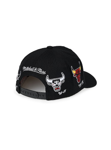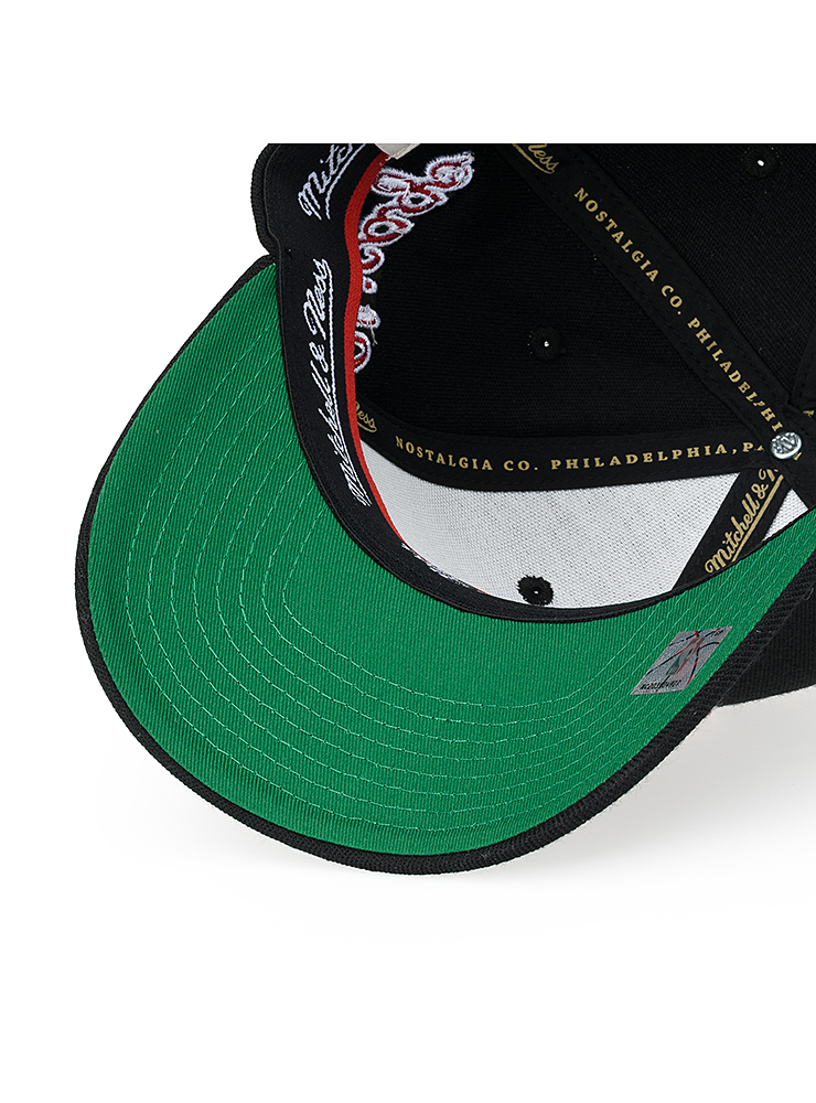 Svart Mitchell & Ness keps med broderade loggor runt om.