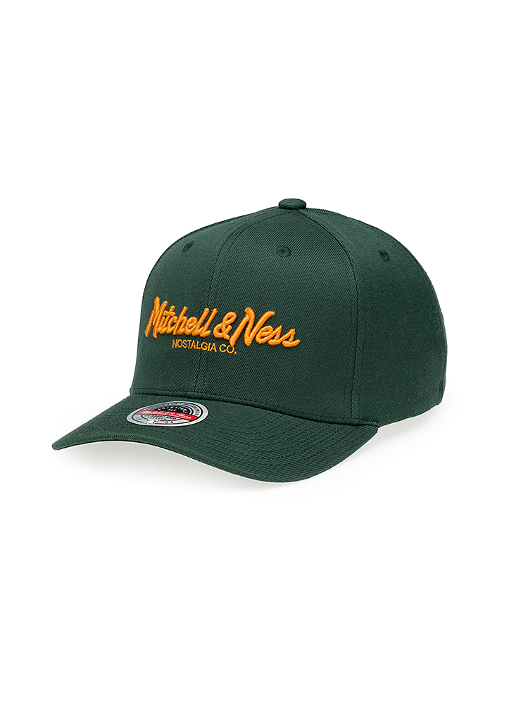 Mitchell and Ness snapback keps med broderad pinscript logo. Böjd skärm, stretch och ställbar storlek.