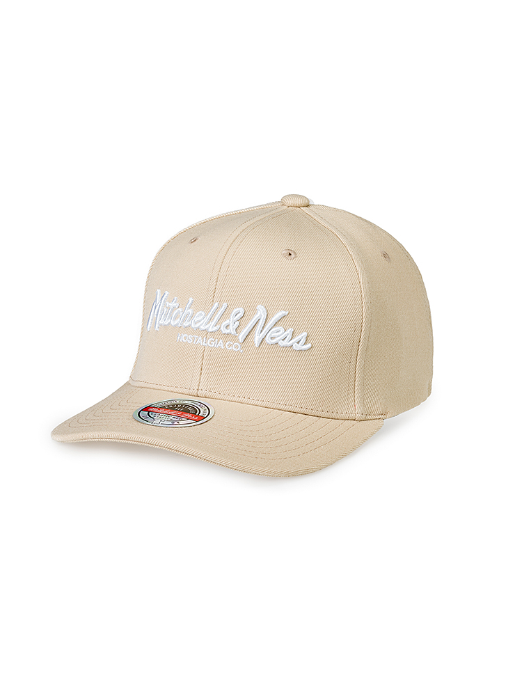 Mitchell and Ness snapback keps med broderad pinscript logo. Böjd skärm, stretch och ställbar storlek.