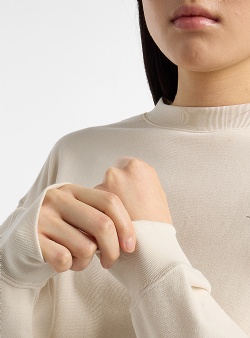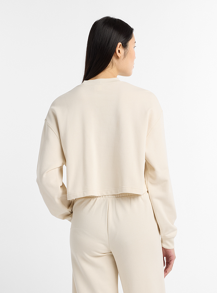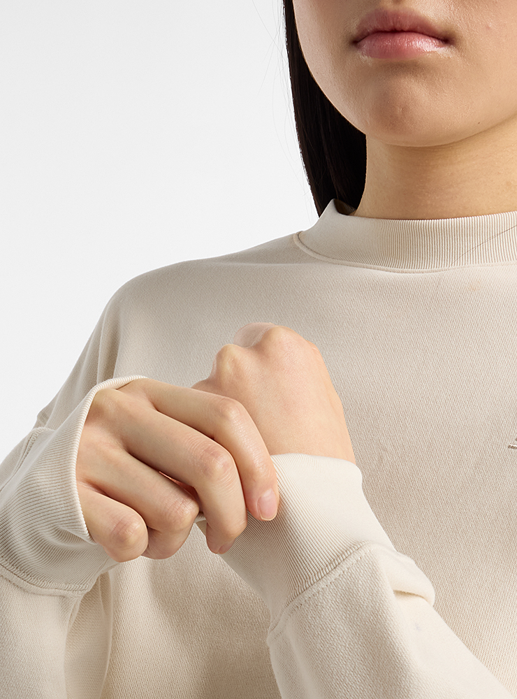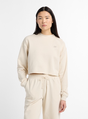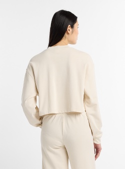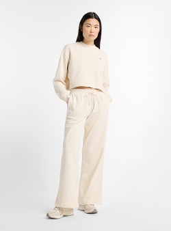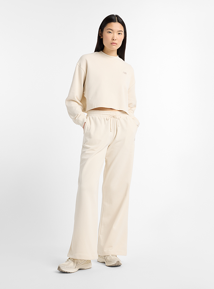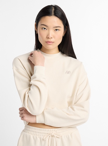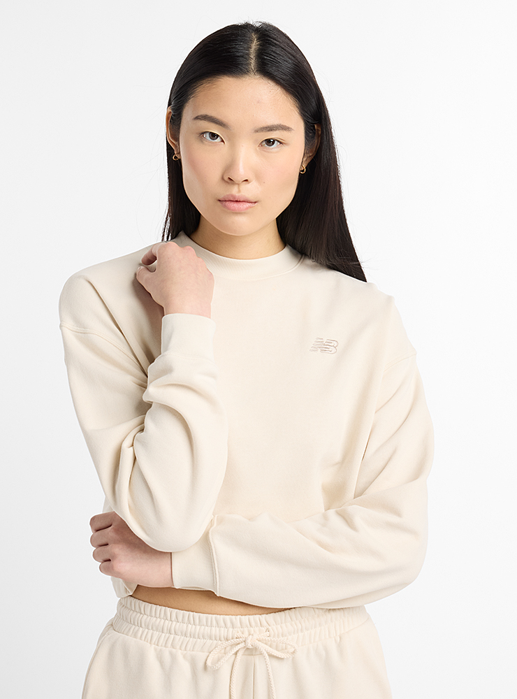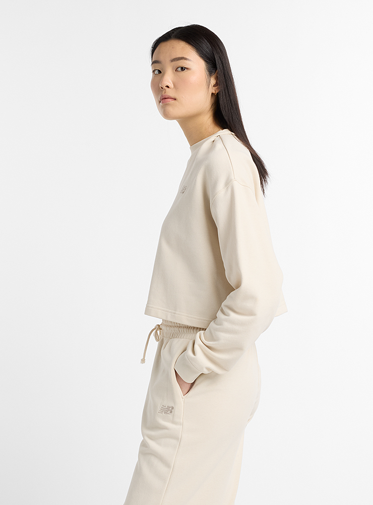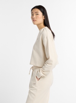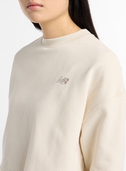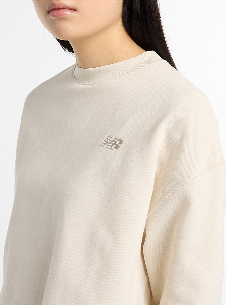 Beige New Balance tröja i oversized kort modell med liten broderad logga på bröstet.