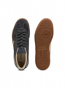 Mörkgråa Puma sneakers i mocka med vita detaljer och sula i naturgummi.