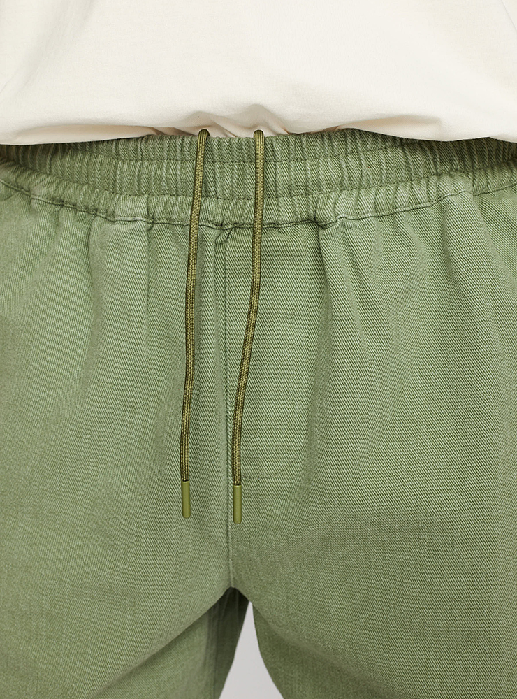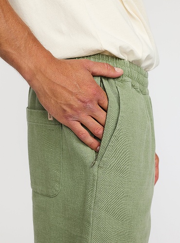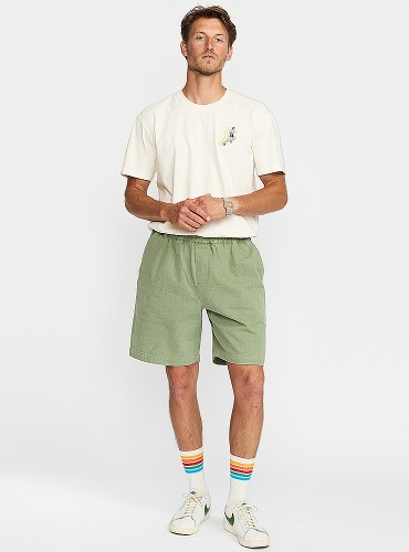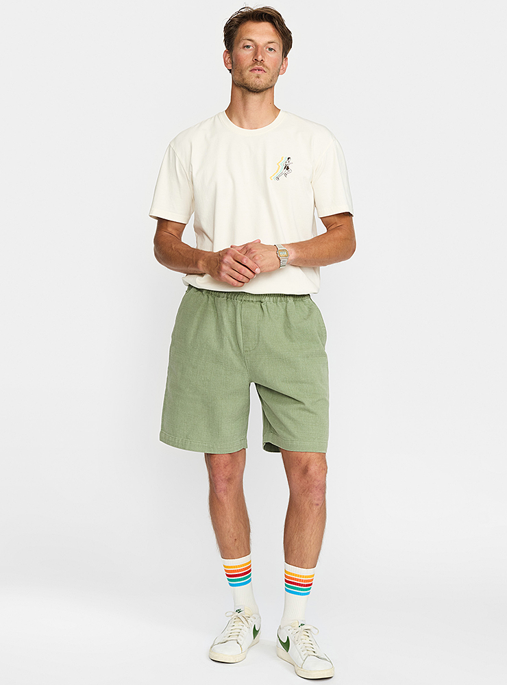 Bekväm, avslappnad modell med resår och invändig snörning i midjan. En bakficka, två framfickor och en gömd ficka med dragkedja vid ena framfickan. Världens skönaste shorts?