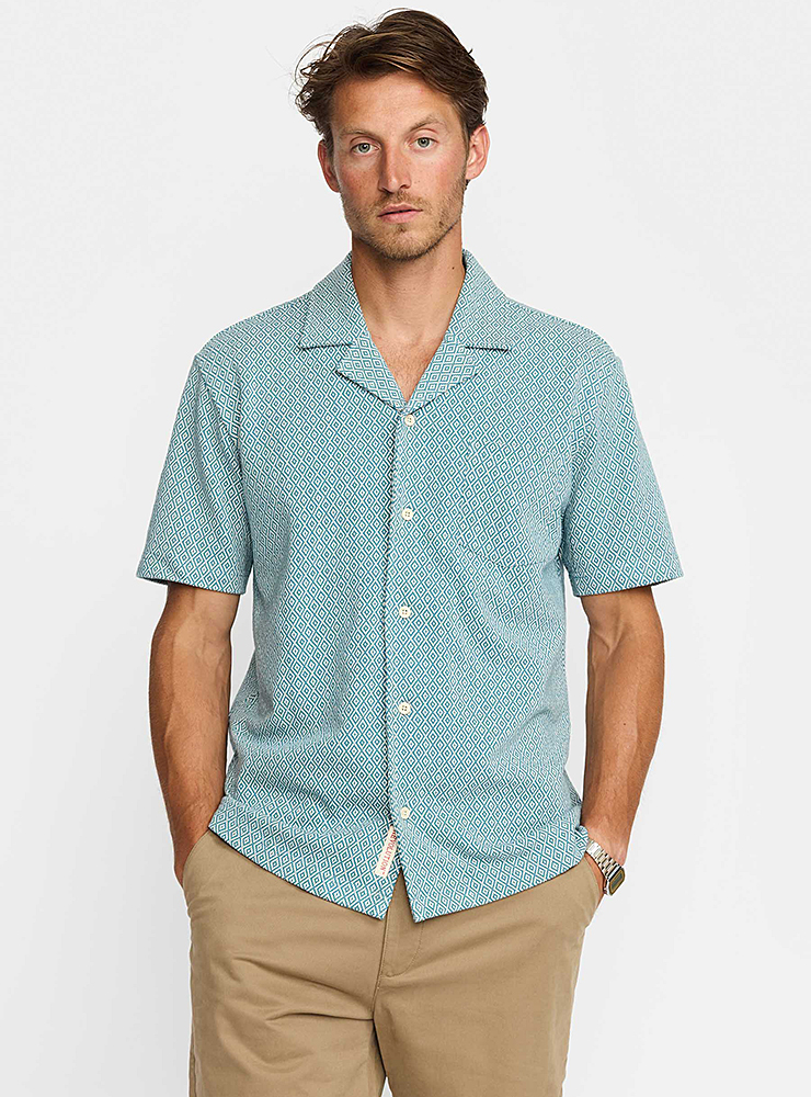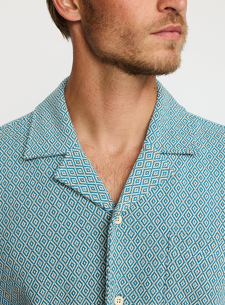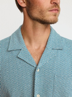 Revolution Jaquard short sleeved cuban shirt Dustblue