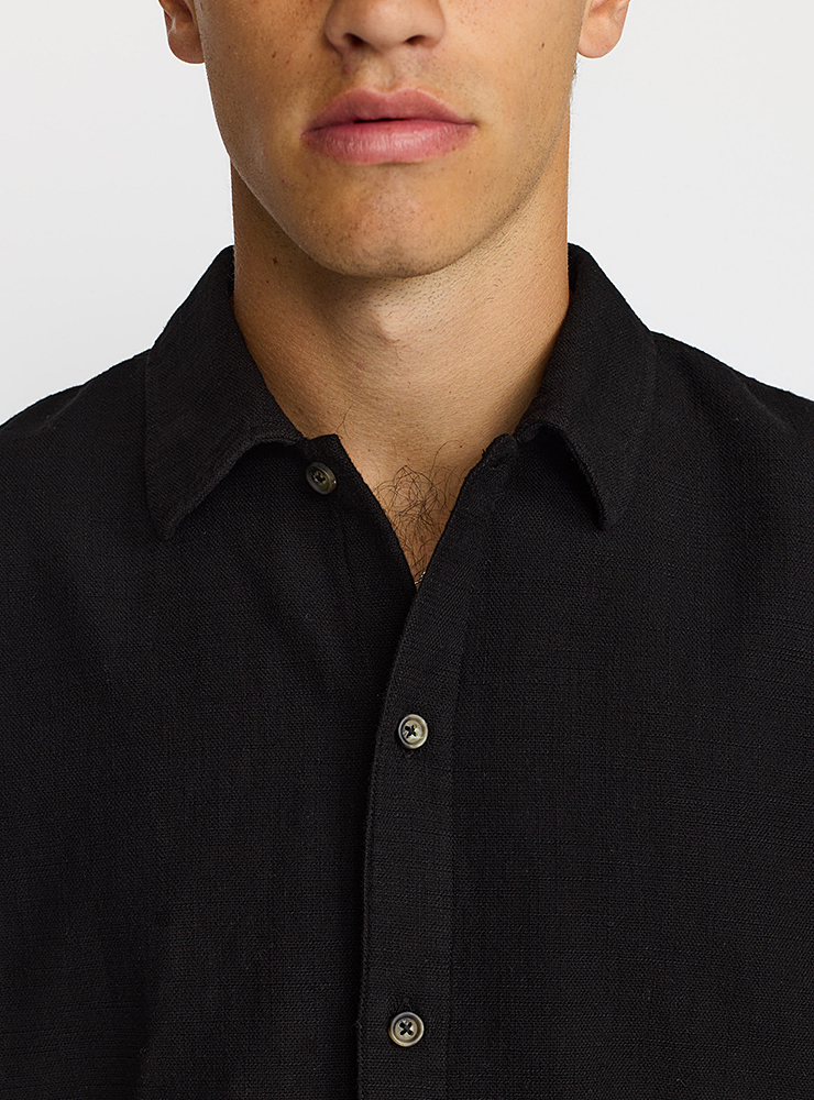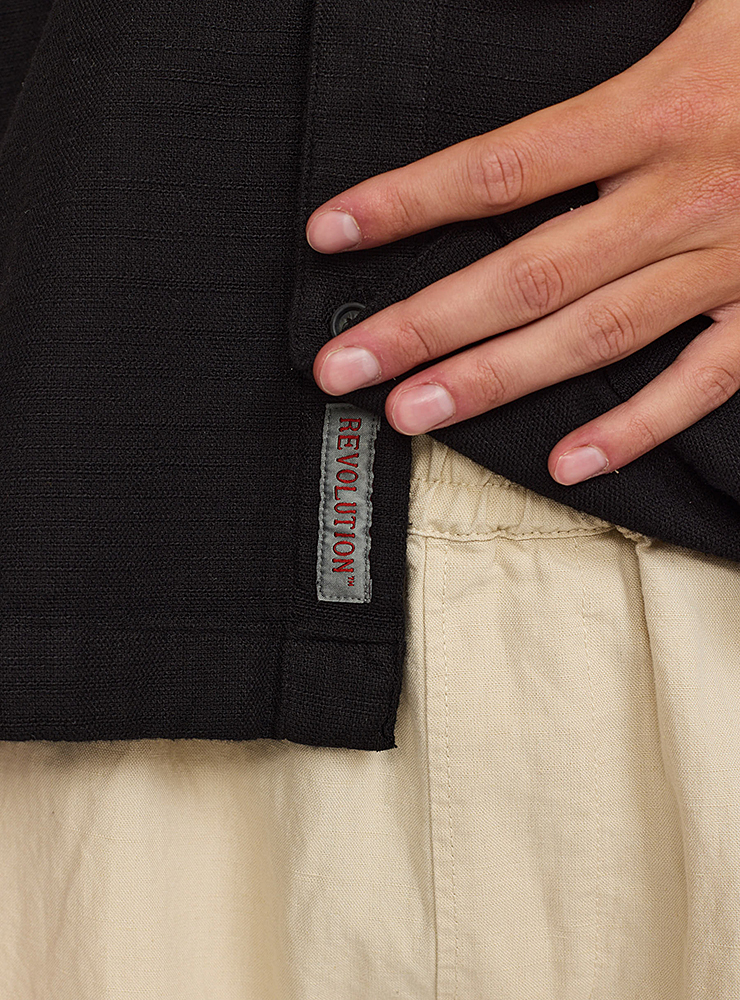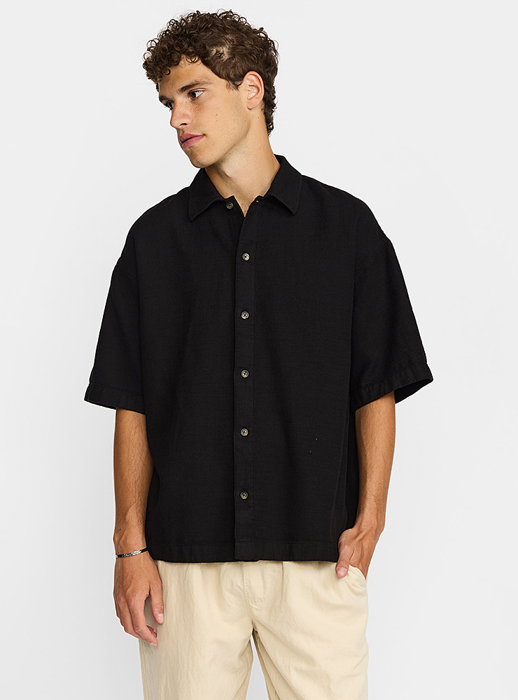 Svart Revolution skjorta med struktur. Oversized passform, så tänk på att den är något vidare än vanliga modeller.