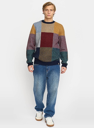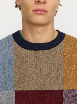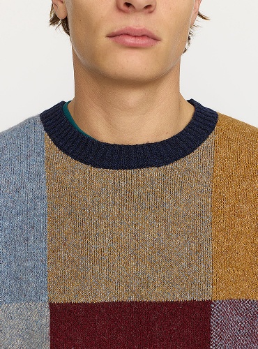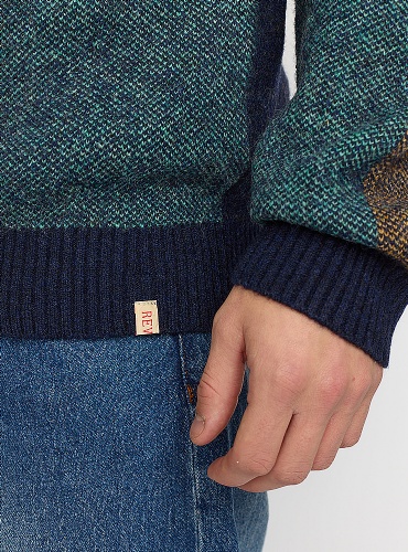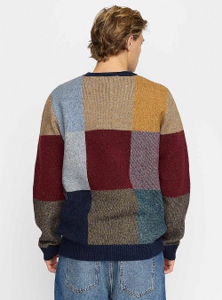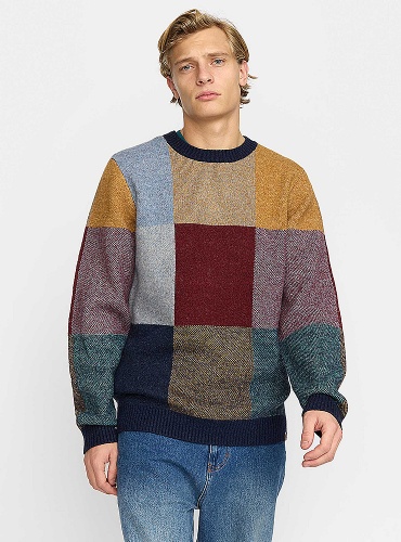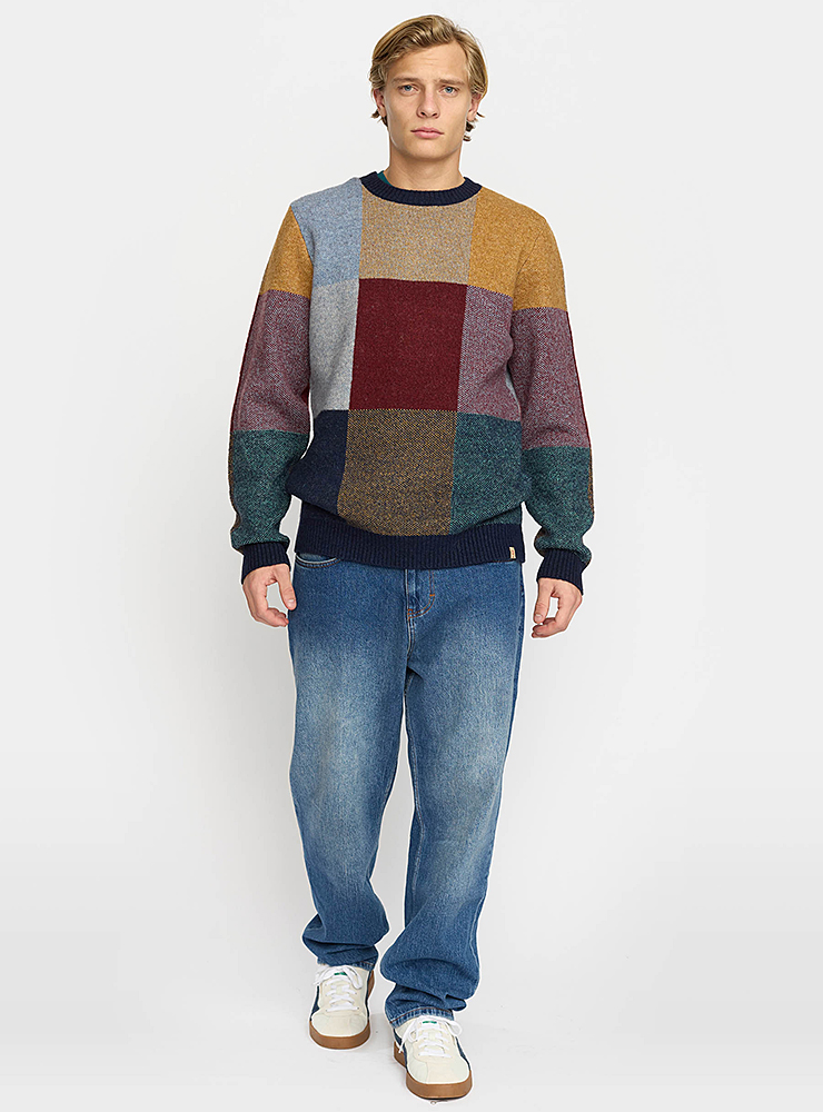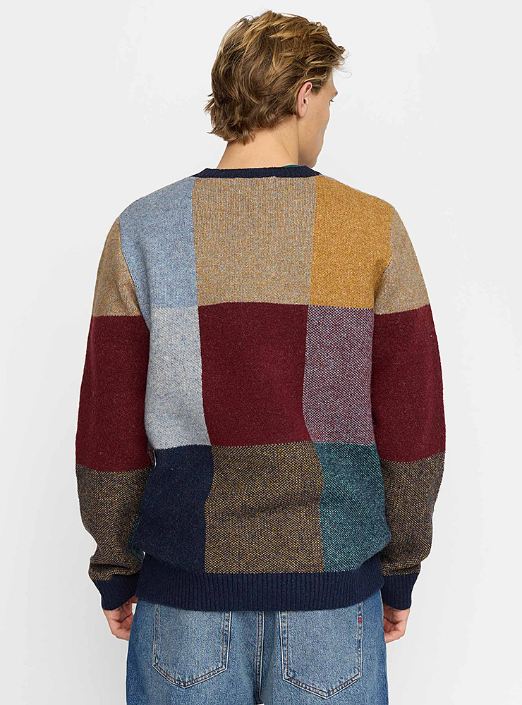 Rutig stickad Revolution tröja i ullmix, tillverkad i delvist återvunnet material.