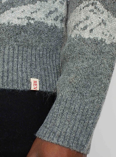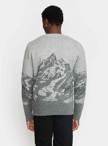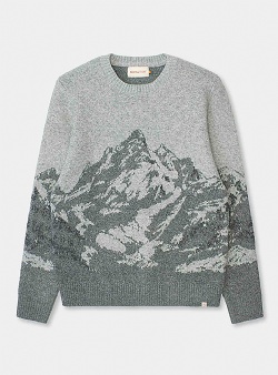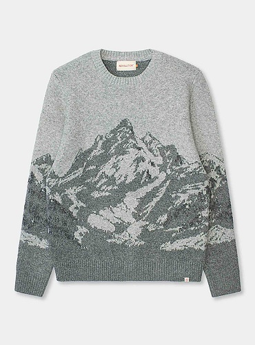 Stickad Revolution tröja med bergsmotiv, tillverkad i delvist återvunnet material.