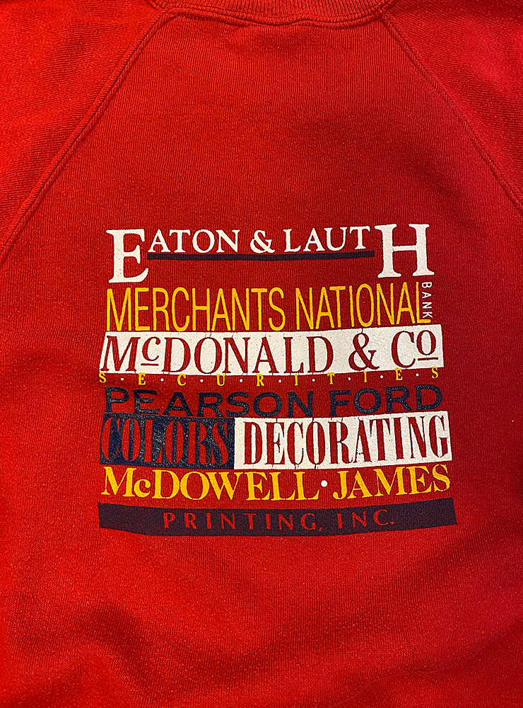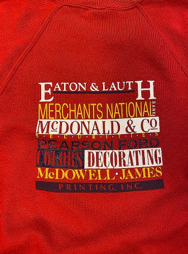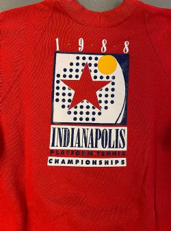 Sweatshirt från 1988 års Indianapolis platform tennis championship. Tryck på ryggen med alla sponsorer, tex Merchants national bank! Från Jerzees i storlek L (se mått nedan).