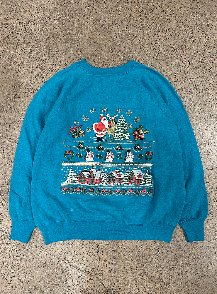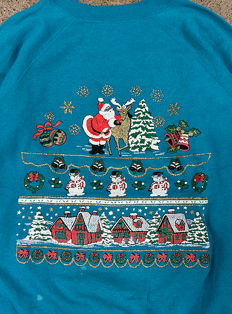 Turkos vintage jultröja från vår second hand avdelning. Sweatshirt från märket Ultra sweats i storlek XL (se mått nedan).