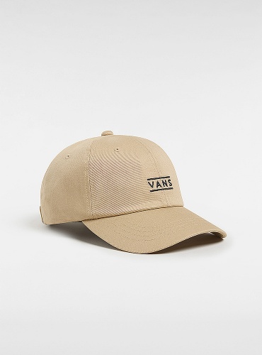 Beige Vans keps. Liten broderad logga fram med böjd skärm Strapback, ställbar storlek.